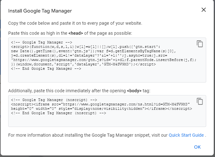 After creation, a window with a code will appear, it must be inserted into the landing, following the instructions