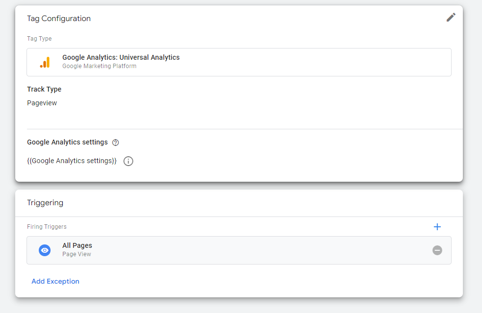 Set the necessary parameters for tracking (set the type of tracking, set the trigger, create a variable)