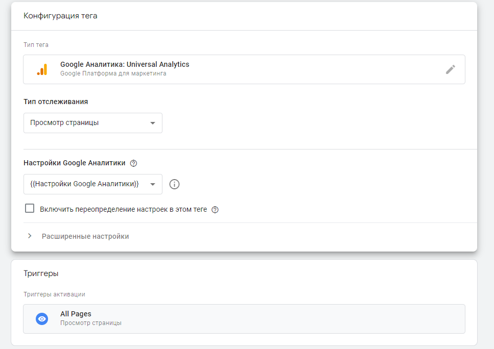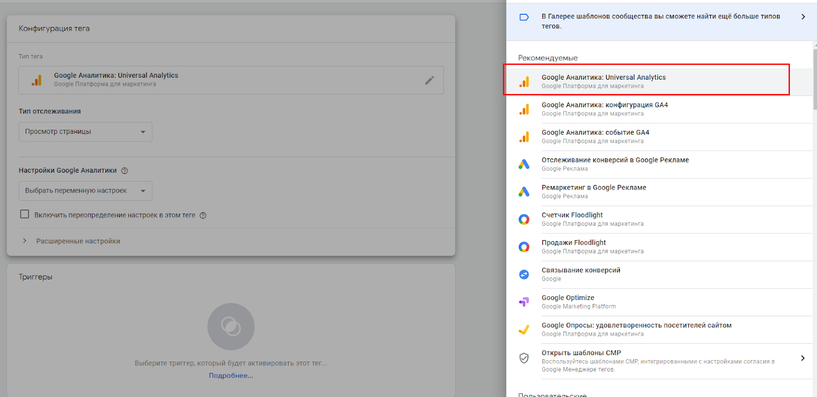 Выберите необходимый тег, в данном случае используйте тег универсальной аналитики.