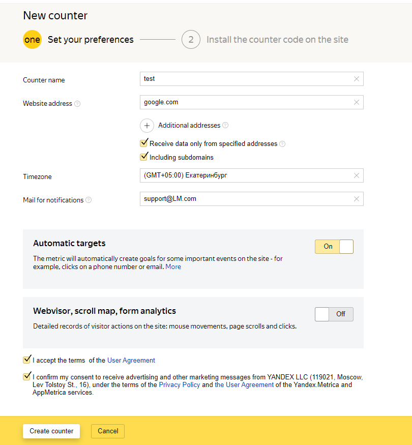 Go to website https://metrica.yandex.com/